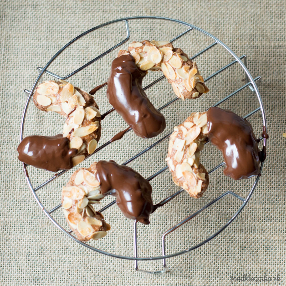 Pečieme 15 – 20 minút pri 190 stupňoch, kým nezačnú zlatnúť. Necháme vychladnúť a medzitým si urobíme polevu (rozpustíme vo vohnom kúpeli, alebo v hrnci s dvojitým dnom). Máčame do nej konce, alebo polovicu podkovičky. Prípadne polievame lyžičkou.