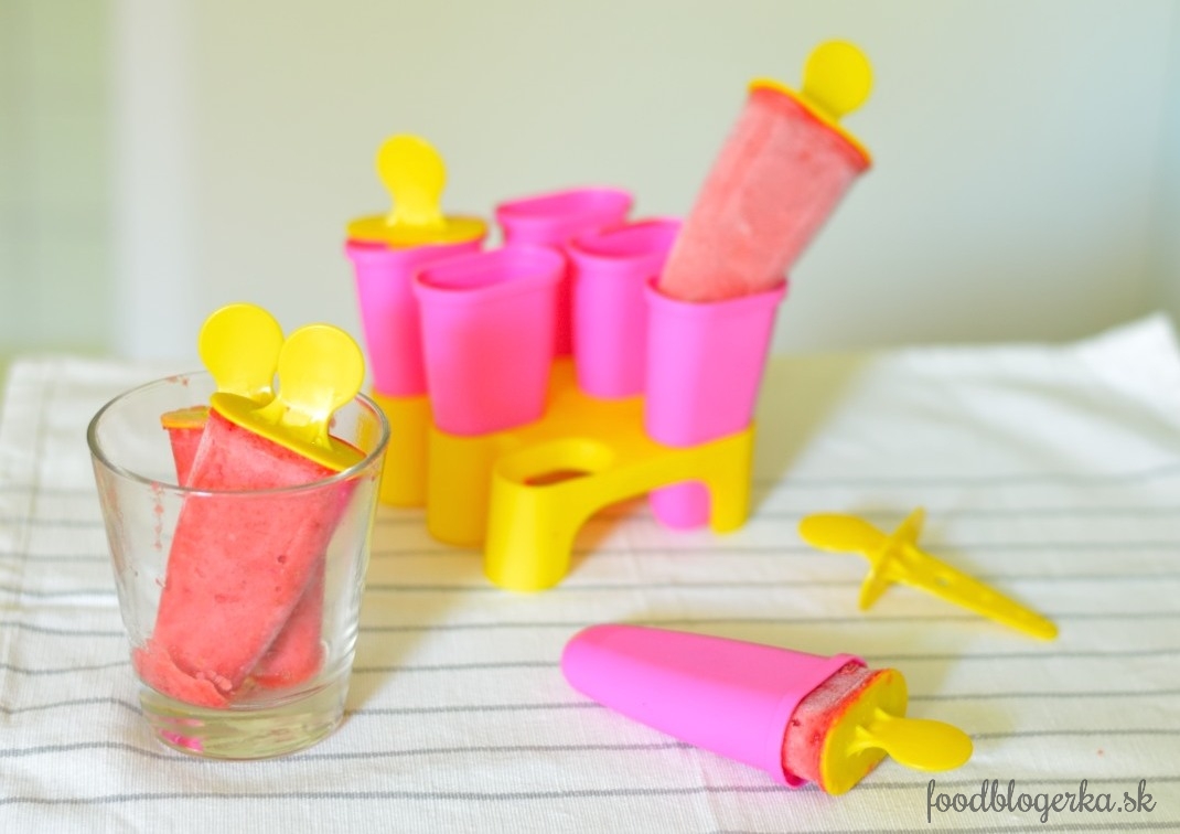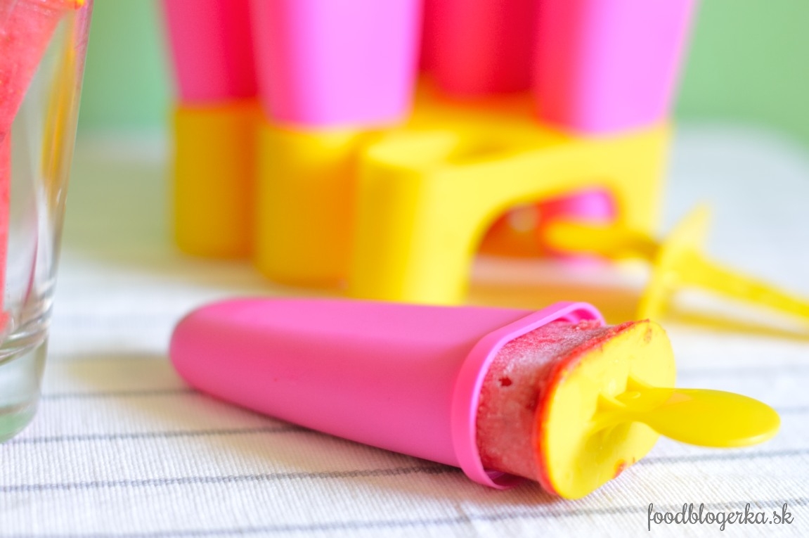 Zamrazené ovocie rozmixujeme tyčovým mixérom a naplníme formičky na nanuky, alebo dáme do farebných plastových pohárikov. Zamrazíme.