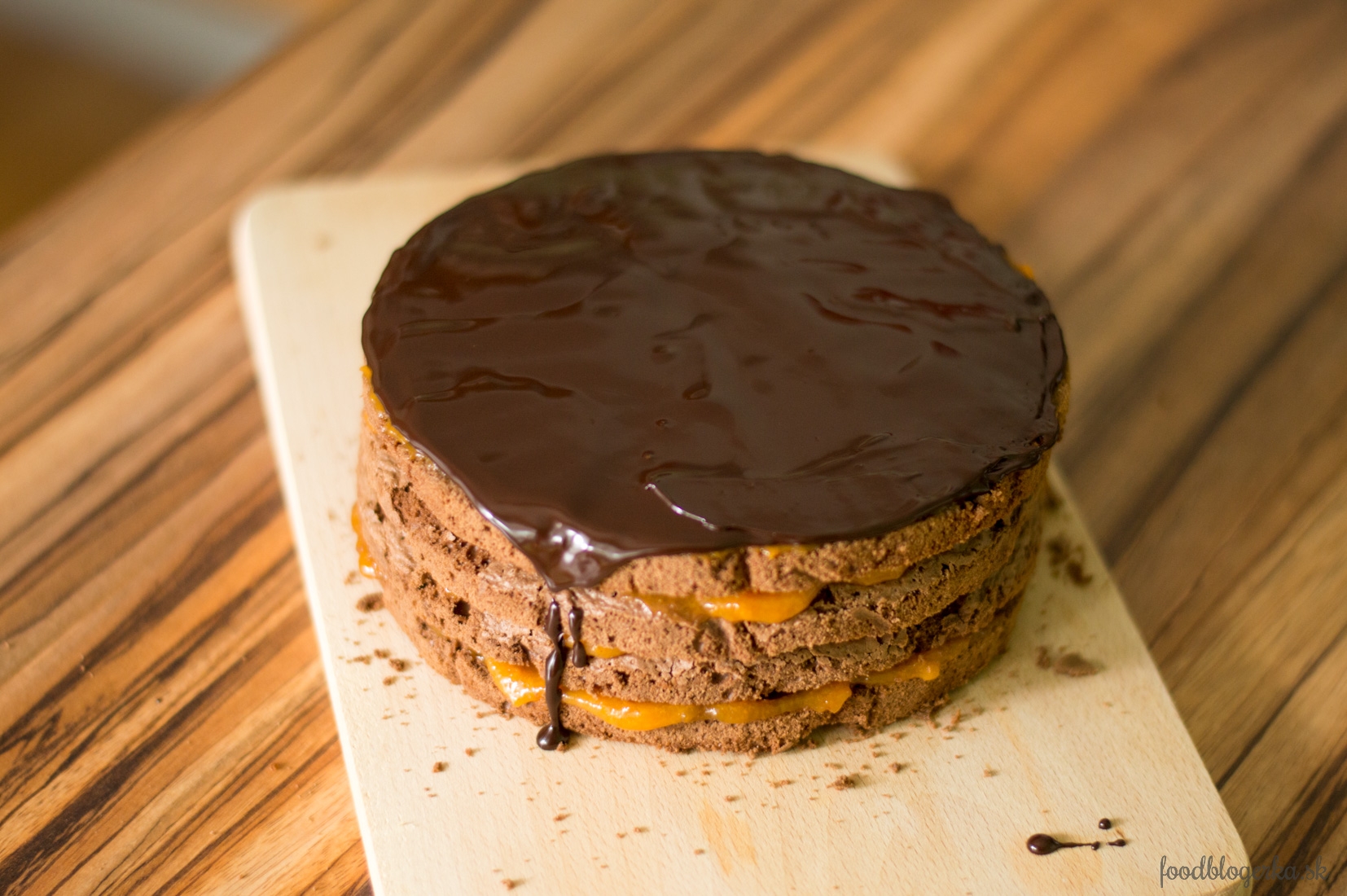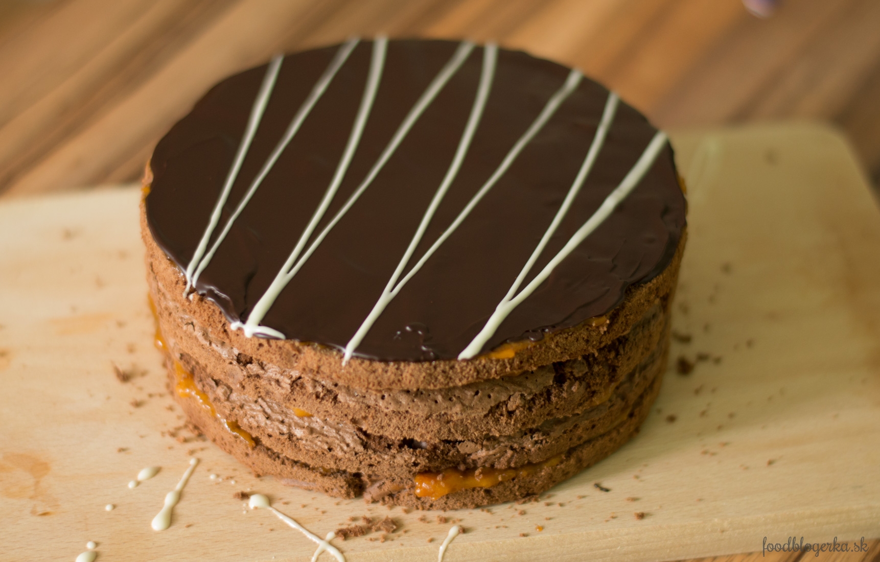 Vo vodnom kúpeli si rozpustíte čokoládu a maslo. Polievame iba vrch torty.