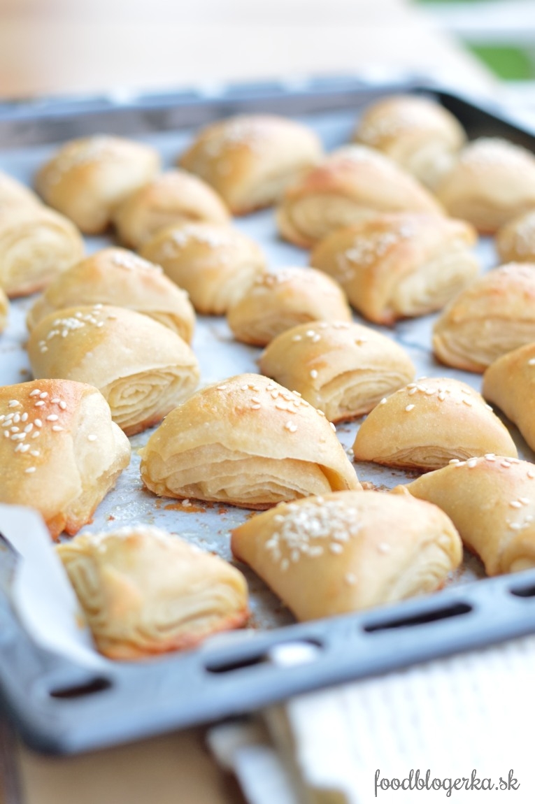 Dáme na plech vystlaný papierom na pečenie. Potrieme rozšľahaným vajíčkom a posypeme makom, alebo sezamom. Pečieme asi tak 20-30 minút. Podľa toho ako máte radi vypečené pečivo.